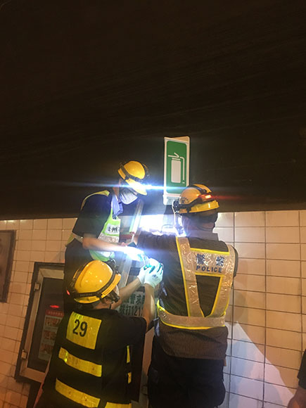22日上午7點半,檢修人員先進行快車道檢修,待隧道清修隊伍進場后,由金衛軍和維養中心主任助理葉俊帶領的兩組照明線路檢修人員緊隨其后,在登高車協助下一前一后檢修隧道內多盞不亮的高壓納燈。由于隧道環境惡劣,洞內灰塵和汽車排放的尾氣容易積累在隧道上方,維修燈具時只要稍稍一動就會掉滿全身,但維修隊不怕臟不怕累,一只口罩一頂安全帽便是他們全副裝備。為加快維修速度,有些一時找不到線路斷點處時,就直接從領近接線盒上重新再拉一根護套線代替,大大提高了工作效率。而底下由維養中心四班班長何小敏帶領的隊員兵分兩路,對隧道壁上的逃生標志指示牌進行修復更換。