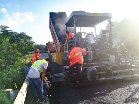 圖為攤鋪瀝青現(xiàn)場 隨后,江輝一行向施工方了解施工機(jī)械設(shè)施、機(jī)械班組運(yùn)行狀況,以及各施工工序銜接是否到位等。江輝一再強(qiáng)調(diào)此項(xiàng)工程的緊迫性,要求在確保施工質(zhì)量和施工安全的同時(shí),加快施工進(jìn)度,保證道路安全暢通。如施工中遇到封道、技術(shù)等相關(guān)問題,他希望施工方盡早提出,以便更好地銜接溝通解決。 據(jù)悉,此次路面維修專項(xiàng)工程計(jì)劃投入2700萬元,于9月26日進(jìn)場施工,臨海南溫向入口匝道先行開展路面專項(xiàng)試驗(yàn)段施工,目前已完成約7000平方米瀝青路段鋪設(shè),后續(xù)工程正緊張而有序的進(jìn)行中,高速路段指數(shù)提升指日可待。 李夢君