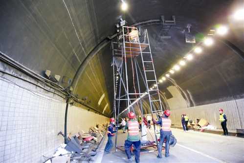 由于隧道機(jī)電改造提升涉及多處高空作業(yè),加上施工環(huán)境差、時間緊等因素,該公司特別成立黃土嶺隧道整治工作領(lǐng)導(dǎo)小組,下設(shè)綜合協(xié)調(diào)、路面、隧道、監(jiān)督、安全保暢五個工作組,及時組織協(xié)調(diào)解決工程推進(jìn)過程中出現(xiàn)的各種問題。綜合監(jiān)督組聯(lián)合工程養(yǎng)護(hù)部人員,時刻駐扎在施工現(xiàn)場,監(jiān)督施工安全、質(zhì)量和進(jìn)度,協(xié)調(diào)施工相關(guān)問題。公司特別制定了值班制度,公司領(lǐng)導(dǎo)輪流蹲點檢查指導(dǎo),高管、安保人員一有空就深入工地現(xiàn)場,一遍遍地檢查,一次次地督促落實各項安全生產(chǎn)工作,確保安全隱患零漏洞。