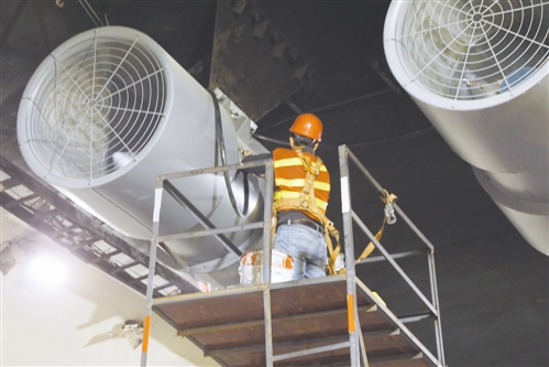 11月1日是隧道整治施工的第四天,工地現(xiàn)場,多個作業(yè)面同時鋪開,施工人員三五個一組共近60來人,有序分工,緊鑼密鼓地開展各項作業(yè)。施工現(xiàn)場,有的站在活動腳手架上安裝燈具,有的在布管線、接線調(diào)試,有的在安裝風(fēng)機(jī)……一項工序銜接著另一項工序,各個工種環(huán)環(huán)相扣。截止當(dāng)晚10點30分,隧道內(nèi)燈具、風(fēng)機(jī)全部安裝完畢,黃土嶺隧道群整治已完成總工程量的60%。