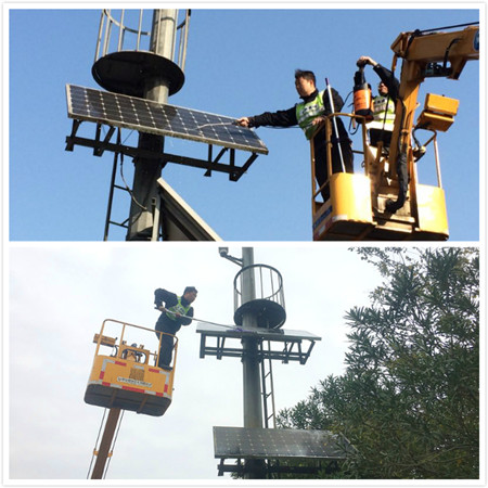 12月12日,集團(tuán)工程養(yǎng)護(hù)部機(jī)電設(shè)備維養(yǎng)中心主任助理葉俊及中心幾名隊員,站在凳高車上,頂著寒風(fēng),利用事先準(zhǔn)備的手動洗車水槍、拖布等清潔工具對公司路面攝像頭太陽能板進(jìn)行一一清洗,使原先布滿污垢的面板立刻變得光亮如新。 集團(tuán)沿線共有40多塊太陽能板。近日,維養(yǎng)中心在設(shè)備巡檢中發(fā)現(xiàn)路面攝像頭太陽能板普遍存在充電電流不足的現(xiàn)象,致使電瓶無法完全充電,一到陰雨天氣或晚上就不能保障攝像頭正常運轉(zhuǎn)。這些太陽能板由于使用年限久(基本都在10年以上),部分面板晶片已出現(xiàn)老化破損,加上冬季日照時間短、強(qiáng)度低等自然因素影響,導(dǎo)致設(shè)備無法有效運轉(zhuǎn),但如果全部更換不僅成本高,而且費時又費力。