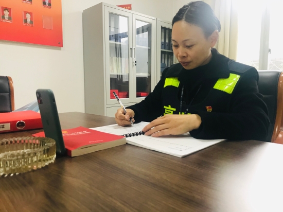 圖為視頻會議中,黨員認(rèn)真做筆記 視頻會議開始后,黨支部書記孫明偉在線領(lǐng)學(xué)《今天,讓我們再次聆聽雷鋒的聲音》。在學(xué)習(xí)中,孫明偉指出,作為新時代的國企共產(chǎn)黨員,我們更應(yīng)該發(fā)揚和傳承好雷鋒精神,踐行全心全意為人民服務(wù)的根本宗旨,形成團(tuán)結(jié)、合作、積極向上的強大動力,發(fā)揮好我們自身的先鋒模范作用和我們支部的戰(zhàn)斗堡壘作用。之后在學(xué)習(xí)“答好四問謀新篇攻堅破難勇?lián)?dāng)”大討論活動中,各黨員要圍繞“公司發(fā)展思路、隊伍作風(fēng)、員工發(fā)展”等方面的問題,在線上有針對性地敞開心扉,積極發(fā)言。 一樣的主題黨日不一樣的活動方式,在此次特殊的主題黨日活動里,臨海南收費所黨支部切實將疫情防控的戰(zhàn)場轉(zhuǎn)化為守初心的考場,凝聚起共克困難的強大正能量。各黨員紛紛表示,在這次防疫戰(zhàn)役中將繼續(xù)發(fā)揚黨員先鋒模范作用,切實履行黨員義務(wù),關(guān)鍵時刻沖一線,自覺接受黨性鍛煉和實踐考驗。 陳瑩