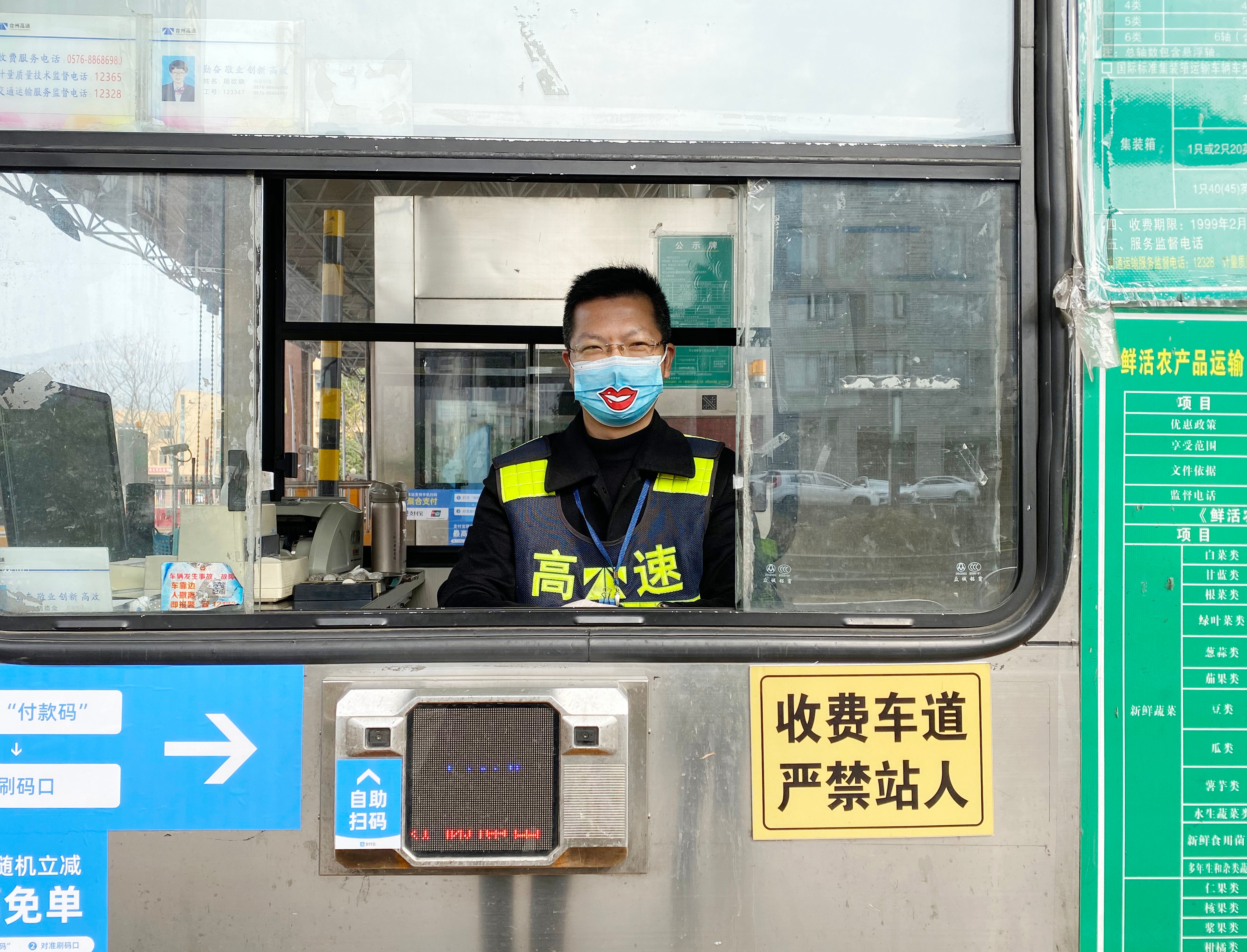 新春將近,這聲音來自廣大司乘,縈繞在臺州收費所崗亭。雖然疫情形勢依舊嚴峻,但是暖心文明服務更要堅守。收費員上崗時必須戴上口罩、手套等防護措施,臺州收費所堅持以微笑傳遞服務,反對一層薄薄的防護疏遠與廣大司乘的距離,為了維護窗口形象,提升文明服務,做到冷冬暖心,臺州收費所動腦動心出真招,將一枚枚笑容“印在”口罩上,一個個小小的笑臉,溫暖著來來往往司乘人員焦灼的心,在做好疫情防控工作的同時,也為收費服務增添一絲趣味。