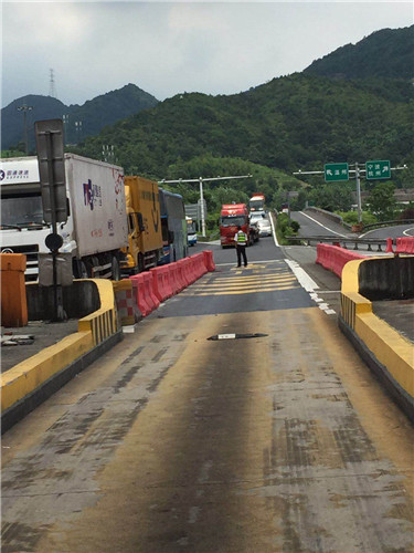 8:30,正是交接班時間,由于四號崗?fù)ぢ访嬲谑┕ぃ瑹o法使用,面對這經(jīng)常出現(xiàn)的大流量,出口承受著巨大的壓力,稍有狀況,就會出現(xiàn)嚴重的擁堵現(xiàn)象。班長李寧一邊提醒大家一定要加快收費速度,自己一邊一直站在一號崗?fù)ね饷妫P(guān)注著各個車道可能出現(xiàn)的突發(fā)情況。收費員蔣弓則奔走于5號車道和ETC車道之間,處理著隨時而來的誤闖車和黑名單車輛。所有的機動人員、行政人員已全部到崗待命。