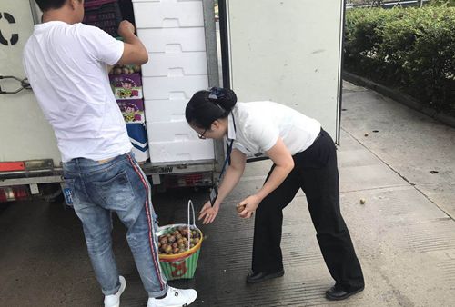 一個個李子雖小,卻很調皮。有的滾到了欄桿前,有的溜到了車道的狹縫里,有的甚至逃到了車底下,收費員鄭維見狀,立馬彎腰撿李子,又迅速跑到欄桿前,很靈活地抓起了好幾個李子。狹縫里都是沖洗車道留下來的臟水,鄭維又毫不猶豫地將手伸向臟水里撿李子,再拿到水龍頭前沖洗一番后放回到司機的籃子里。一來一回好幾趟,原本平日里就怕熱的鄭維早已滿身大汗,此時她卻全然不顧。