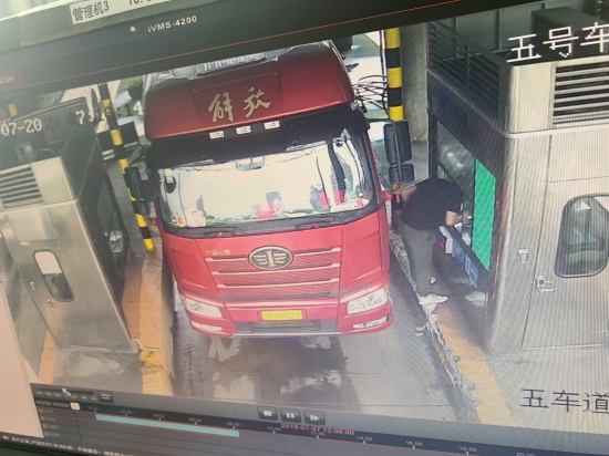 圖為失主遺落錢財現(xiàn)場 當(dāng)天上午,收費班長李寧巡查時在第五車道窗口附近發(fā)現(xiàn)了三百元現(xiàn)金,經(jīng)多方確定不是所內(nèi)工作人員遺失后,判斷為過往司機(jī)不小心遺失。為了盡快找到失主,李寧隨即去監(jiān)控室調(diào)取視頻查找。 經(jīng)過監(jiān)控查找,馬上鎖定了一輛車牌為“豫”字開頭的大貨車。原來當(dāng)時因駕駛室距離窗口較遠(yuǎn),司機(jī)下車付錢,監(jiān)控中清晰顯示司機(jī)在掏錢繳費時三百塊現(xiàn)金從口袋里掉到車道上,但是司機(jī)因為趕路絲毫沒有發(fā)覺。確認(rèn)失主后,工作人員查詢司機(jī)電話并取得聯(lián)系,告知其遺失三百現(xiàn)金,在通過微信確認(rèn)身份后,李寧將錢轉(zhuǎn)給了司機(jī)。