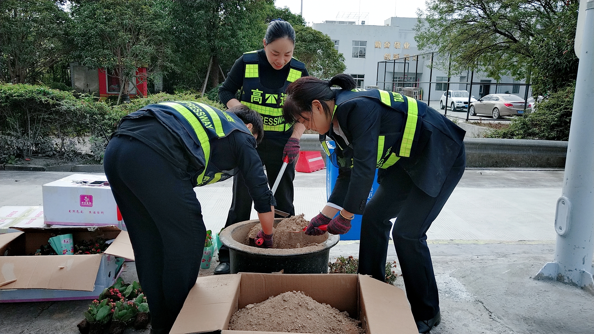 圖為栽種現場 現場,志愿者們身穿反光背心,拿著鋤頭、鐵鍬、水桶,帶著事先買來的小花苗,來到收費區(qū)域的島頭開始栽花活動。所領導班子成員身體力行,帶領大家投入到緊張的勞動中。大家挽起衣袖,不怕臟、不怕累,有的松土、有的種花、有的填土,有的澆水……有序地將一棵棵花苗栽進土壤。 通過大家的共同努力,經過近4個小時的時間,400棵樹苗被栽進了20多個大花盆中,美化了整個車道環(huán)境。 此次栽花活動增強了大家的生態(tài)環(huán)保意識和綠化意識,大家紛紛表示添花更要護花,要將綠化活動意識長期付諸實踐,共同建設美麗溫嶺西收費站。 鄭霞霞