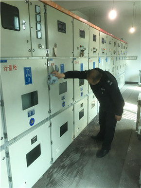 圖為當(dāng)值班組隊(duì)員擦拭站所玻璃門