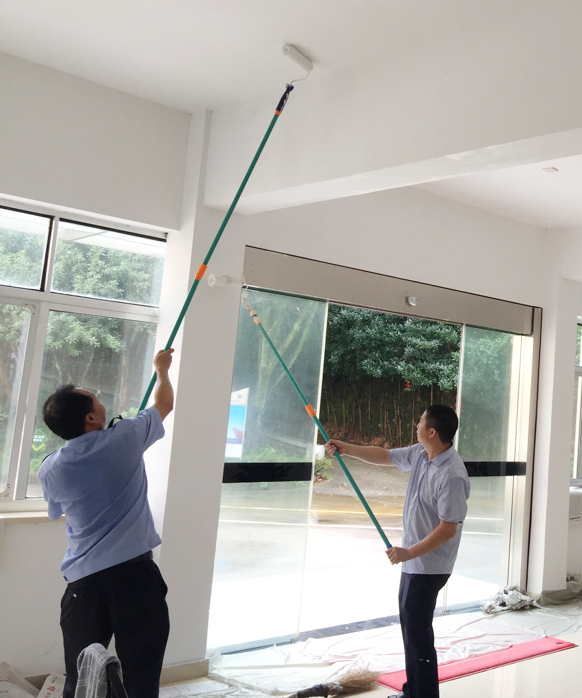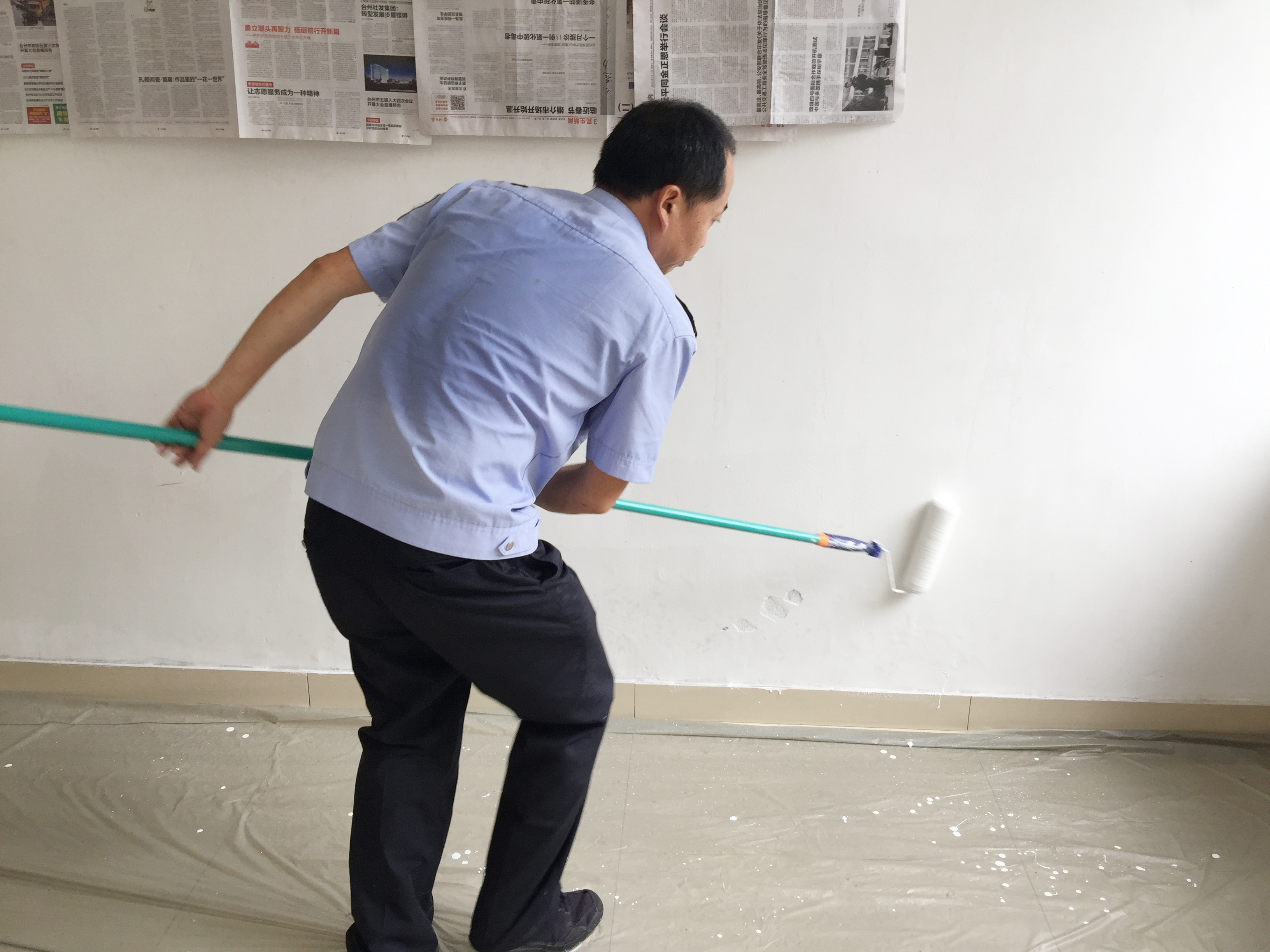 圖為“粉刷匠”粉刷現(xiàn)場(chǎng) 現(xiàn)場(chǎng),工具備齊后,大家捋起袖子開始動(dòng)工。家里正在裝修的林通,有著豐富的粉刷經(jīng)驗(yàn),指導(dǎo)大家如何將墻體粉刷得平整又美觀。分工明確后,有的拿起粉刷棒,有的攪拌涂料,有的鋪墊報(bào)紙及塑料紙,有的清理刷墻后殘留在地面的垃圾。整個(gè)勞動(dòng)過(guò)程中,各個(gè)動(dòng)作麻利,干勁十足。粉刷是個(gè)技術(shù)活,更是個(gè)力氣活,只見浸滿涂料的刷子在墻上揮舞著,個(gè)個(gè)汗如雨下,卻都顧不得休息,在大家的齊心協(xié)力下,原本一片灰不溜湫的墻壁變得雪白光潔。 這次義務(wù)勞動(dòng),不僅美化了站所環(huán)境,營(yíng)造出廉潔的工作氛圍,增強(qiáng)了員工的凝聚力和向心力,更增加了全體員工對(duì)公司的一份熱愛。 林玲