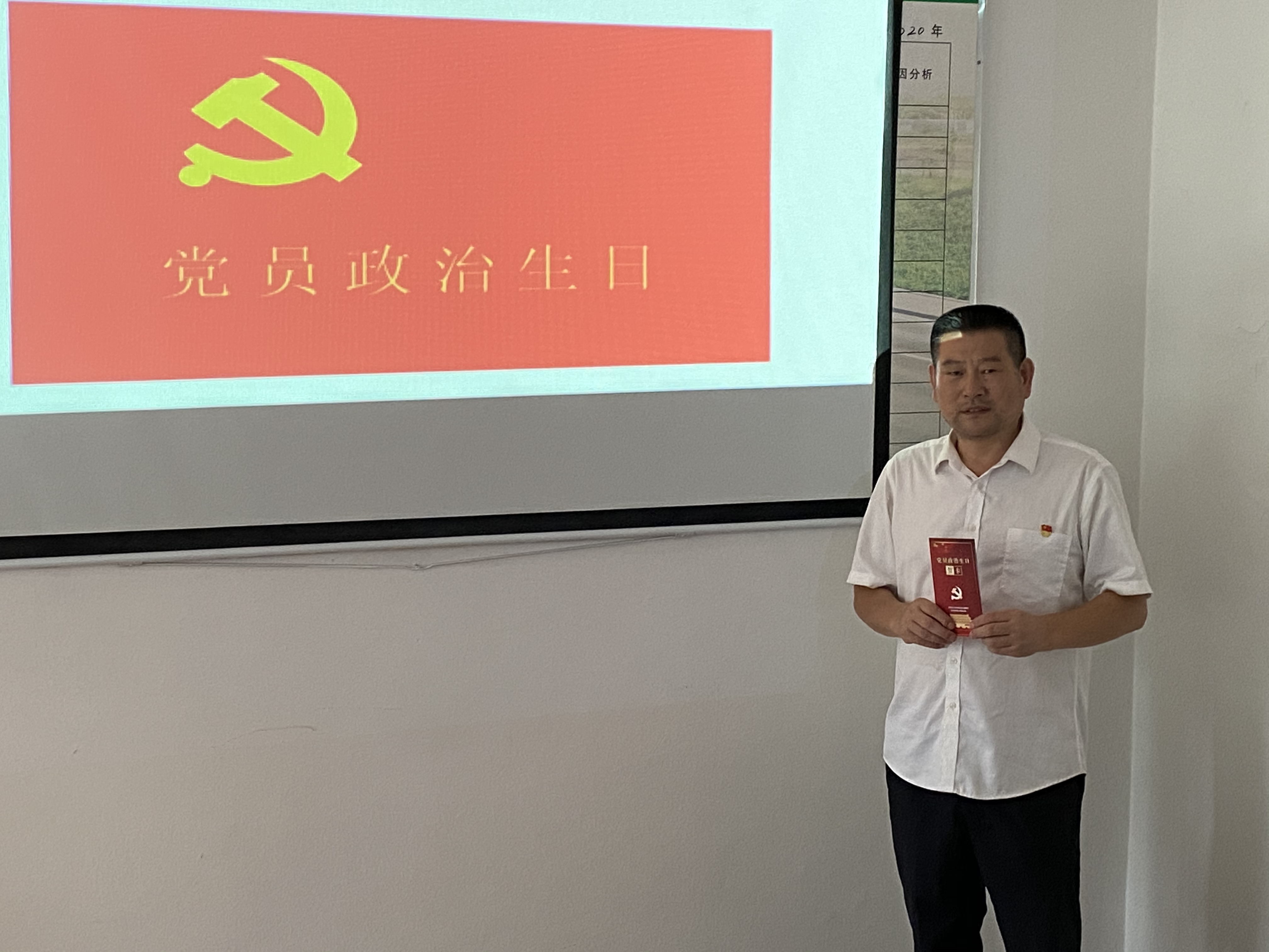 會議現場,黨支部書記李海福向李學來贈送“政治生日”賀卡,并送上“政治生日”祝福,讓李學來感受到來自黨組織的關懷。
