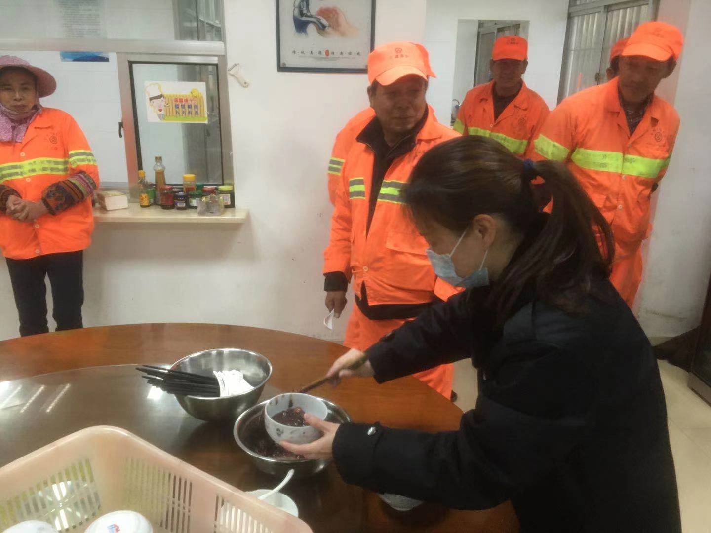 上午十點左右,盧所把工人們迎到食堂,熱情的招呼著大家。當班的隊員們把一碗碗熱乎乎的臘八粥送到養護工人們的手中,吃著這冬日里的熱粥他們臉上露出了由衷的笑容。 下午,從公司匆匆趕回來的應所帶領隊員們對隧道的清洗情況進行了驗收,肯定了養護工人們的勞動成果,并表示了親切的慰問,同時把一幅幅春聯親自送到了他們的手中。