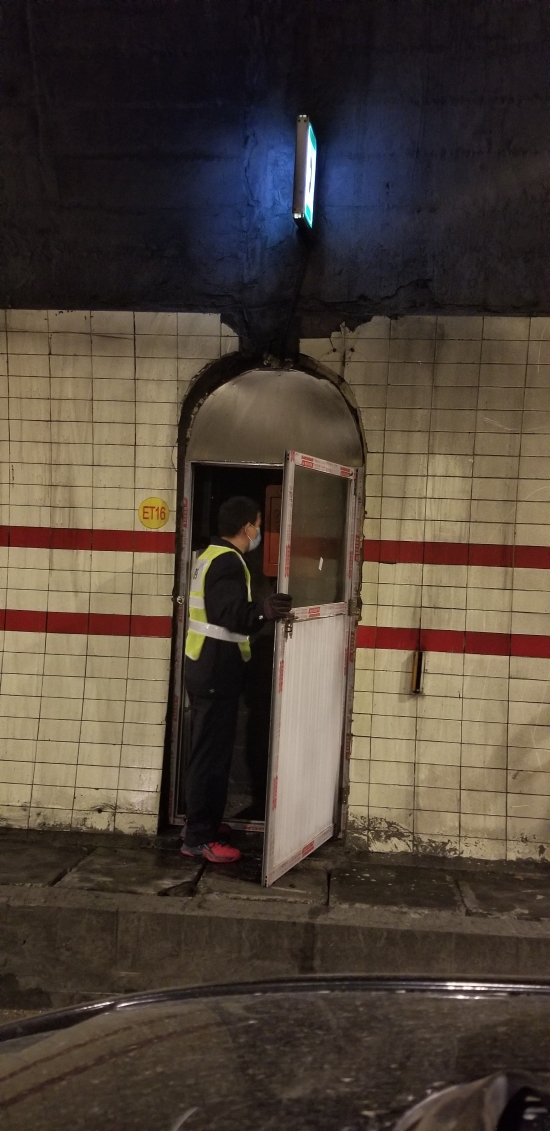 圖為工作人員在檢修緊急電話 此次隧道清洗,隧道所員工加班加點(diǎn),檢查隧道內(nèi)消防箱、檢修隧道風(fēng)機(jī)和加強(qiáng)燈回路、修理故障的語(yǔ)音提示,對(duì)配電房機(jī)電設(shè)備進(jìn)行除塵保養(yǎng),還檢測(cè)了火災(zāi)報(bào)警、緊急廣播、緊急電話等系統(tǒng)。