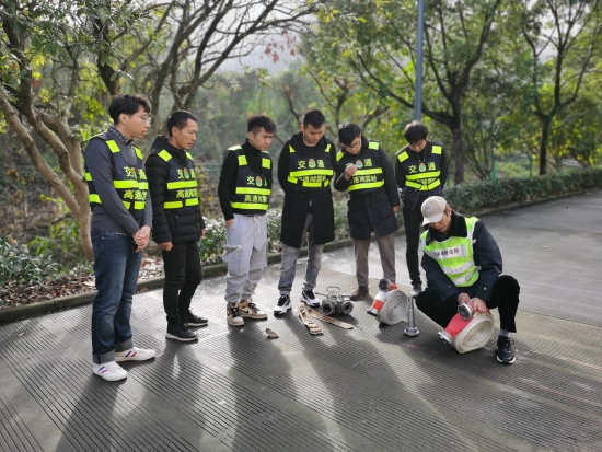圖為陶文輝在教樂清公司員工如何進(jìn)行水帶操作 本次培訓(xùn)對隧道預(yù)警流程、二帶連接及執(zhí)勤隊(duì)在平時(shí)巡邏、預(yù)警、處理事故中如何確保自身安全等進(jìn)行重點(diǎn)講解。執(zhí)勤隊(duì)長帶領(lǐng)隊(duì)員們在管理所操場進(jìn)行模擬主線卡口、事故拋錨車預(yù)警封道操作,樂清公司員工觀摩之后也進(jìn)行實(shí)際操作,孫鵬詳細(xì)講解擺放隔離錐應(yīng)注意事項(xiàng),每一隔離錐的間隔位置、巡邏車后方擺放的安全距離,事故處理之后,收隔離錐應(yīng)注意的安全動(dòng)作。陶文輝為樂清公司員工演示“二帶連接”,并對水帶的甩、接、收每一動(dòng)作盡可能詳細(xì)仔細(xì)地進(jìn)行解說示范。