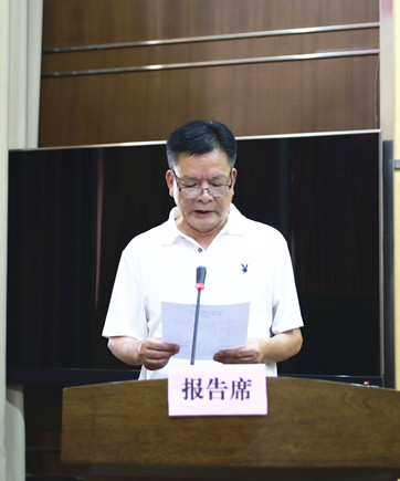 圖為公司副總經(jīng)理陳保衛(wèi)宣讀《關(guān)于轉(zhuǎn)讓臺(tái)州高速泰和房產(chǎn)公司股權(quán)的議案》