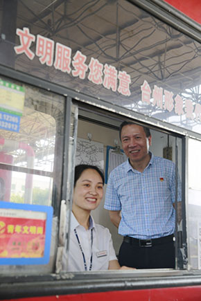 圖為公司副董事長(zhǎng)、總經(jīng)理張建平慰問(wèn)崗?fù)ぎ?dāng)班收費(fèi)員