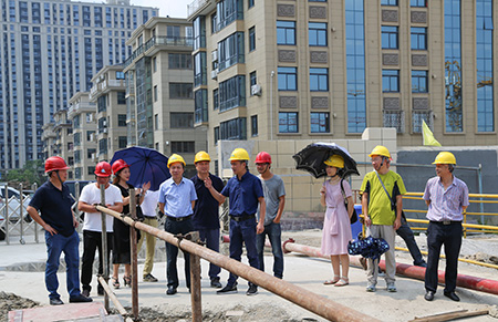 圖為集團(tuán)副董事長(zhǎng)、總經(jīng)理張建平在文鼎苑項(xiàng)目工地了解工程進(jìn)度情況