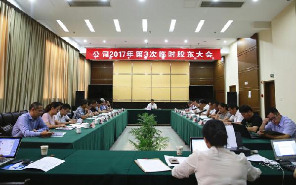 9月13日上午,公司2017年第3次臨時股東大會在26樓會議室召開。出席本次股東大會的股東共9人,代表股份97247546股,占公司總股本的比率為45.02%,占本次股東大會登記股份的比率為99.81%。根據(jù)《公司章程》與《公司法》的有關規(guī)定,本次大會合法有效。