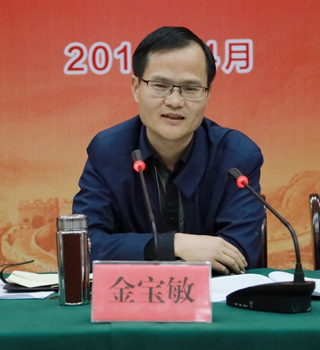 圖為市交投集團黨委副書記、副董事長、總經理金寶敏出席會議并發表重要講話