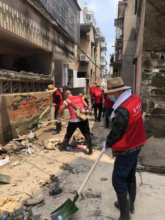 圖為臺州高速志愿者支援災(zāi)區(qū)重建現(xiàn)場 在臨海古城赤城路米篩巷,臺州高速集團的志愿者們頂著毒辣的太陽,不怕臟不怕累,積極為災(zāi)后重建貢獻力量,清理路面淤泥、垃圾,保障路面清潔以及道路順暢。 真情傳遞溫暖 愛心匯聚力量, 面對災(zāi)后重建, 臺州高速集團用實際行動, 彰顯鐵軍精神, 承擔(dān)社會責(zé)任, 展現(xiàn)使命擔(dān)當(dāng)。