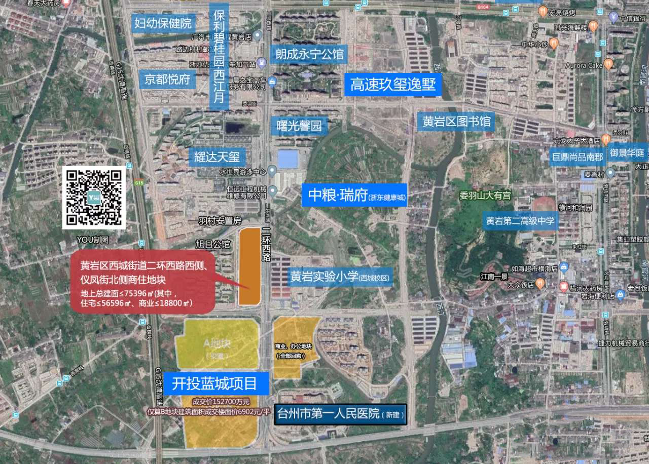 該地塊位于黃巖區(qū)西城街道二環(huán)西路西側(cè)、儀鳳街北側(cè),耀達(dá)天璽南側(cè)。地塊出讓面積3.7698公頃,容積率1.0~2.0,可建地上總建筑面積75396㎡。地塊位于黃巖委羽山板塊,北臨黃巖老城中心,未來(lái)將以浙東健康城為重點(diǎn),建成集道學(xué)文化、醫(yī)療、康養(yǎng)、商業(yè)、生活及休閑于一體的綜合性城市發(fā)展片區(qū)。距離內(nèi)環(huán)線入口不超過(guò)2公里,周邊分布著實(shí)驗(yàn)小學(xué)西城校區(qū)、文化館及臺(tái)州市第一人民醫(yī)院等配套設(shè)施,教育、醫(yī)療資源非常豐富,宜居宜業(yè)。