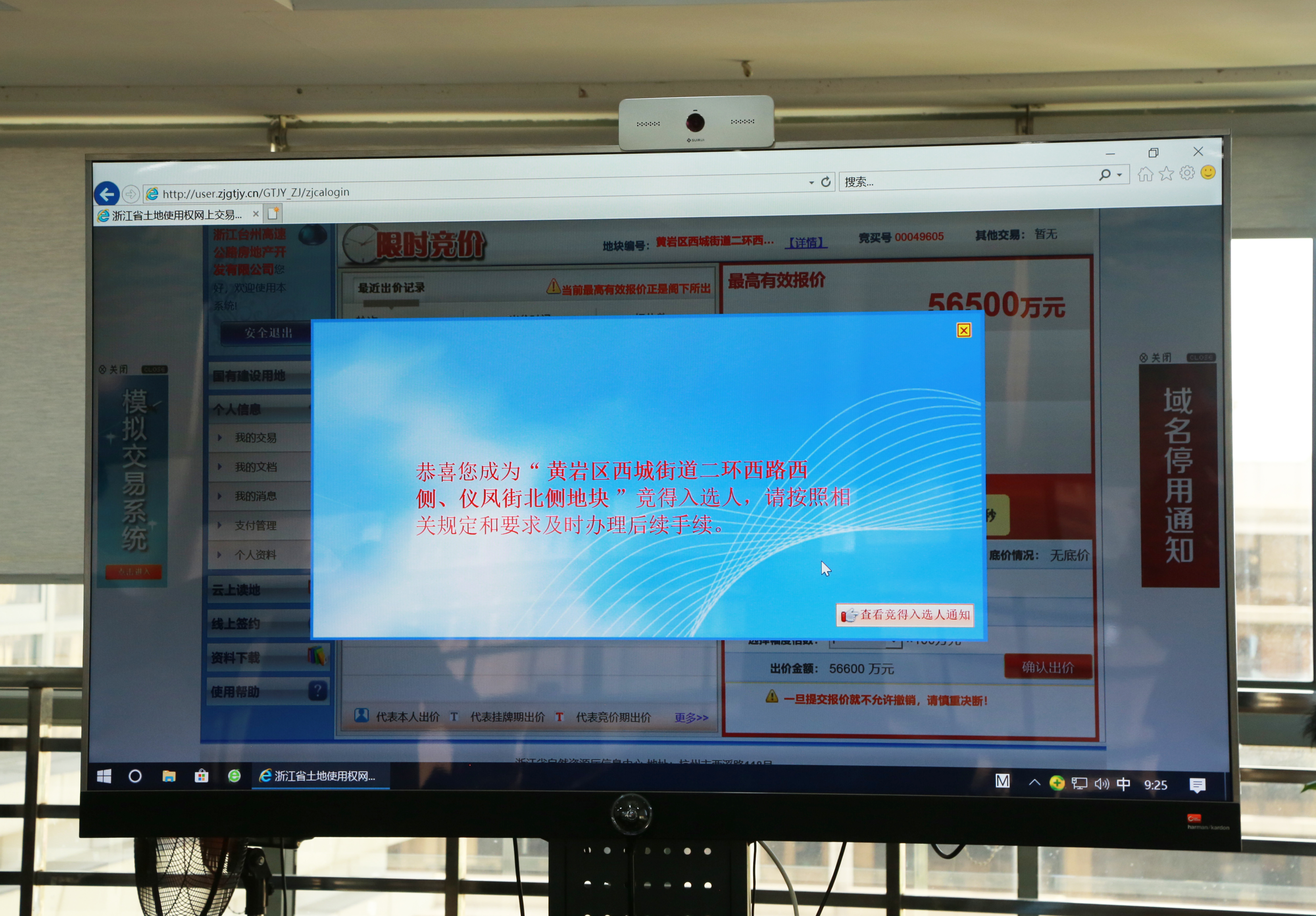 喜報(bào)!臺(tái)州高速再次成功斬獲黃巖新地! 6月18日上午9點(diǎn)20分,臺(tái)州高速集團(tuán)再次斬獲黃巖新地!以5.65億元成功競(jìng)拍黃巖區(qū)西城街道二環(huán)西路西側(cè)、儀鳳街北側(cè)地塊。臺(tái)州高速集團(tuán)黨委書(shū)記、董事長(zhǎng)、總經(jīng)理陳文波坐鎮(zhèn)指揮,副總經(jīng)理羅小將陪同參加競(jìng)拍。