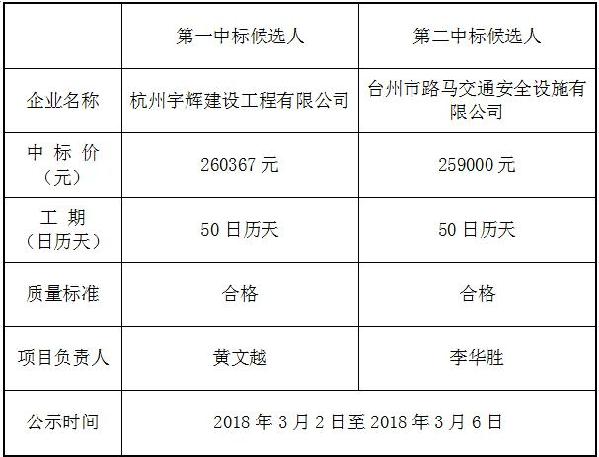 浙江臺州高速公路集團股份有限公司(招標人),高埭橋、新高村橋、中心路橋橋下限高桿工程,經評標委員會評審,結果公示如下: