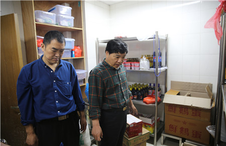 圖為集團(tuán)安全總監(jiān)項(xiàng)同富檢查食堂衛(wèi)生