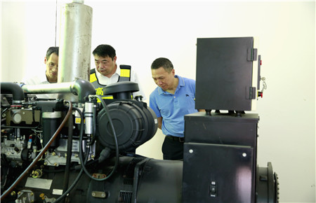 張建平察看了配電房,詳細(xì)了解工作職責(zé),要求當(dāng)班員工啟動(dòng)發(fā)電機(jī)組看看保養(yǎng)工作是否到位,機(jī)電運(yùn)行是否正常。