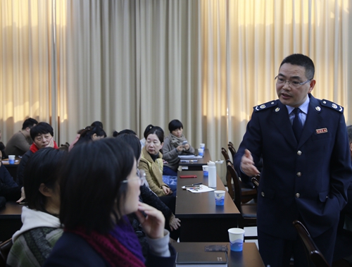 圖為臺(tái)州經(jīng)濟(jì)開(kāi)發(fā)區(qū)稅務(wù)局局長(zhǎng)柳東海在課上講話