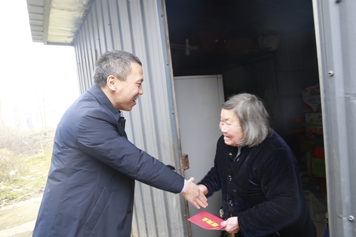 圖為集團總經(jīng)理張建平走訪慰問老人鮑于朝