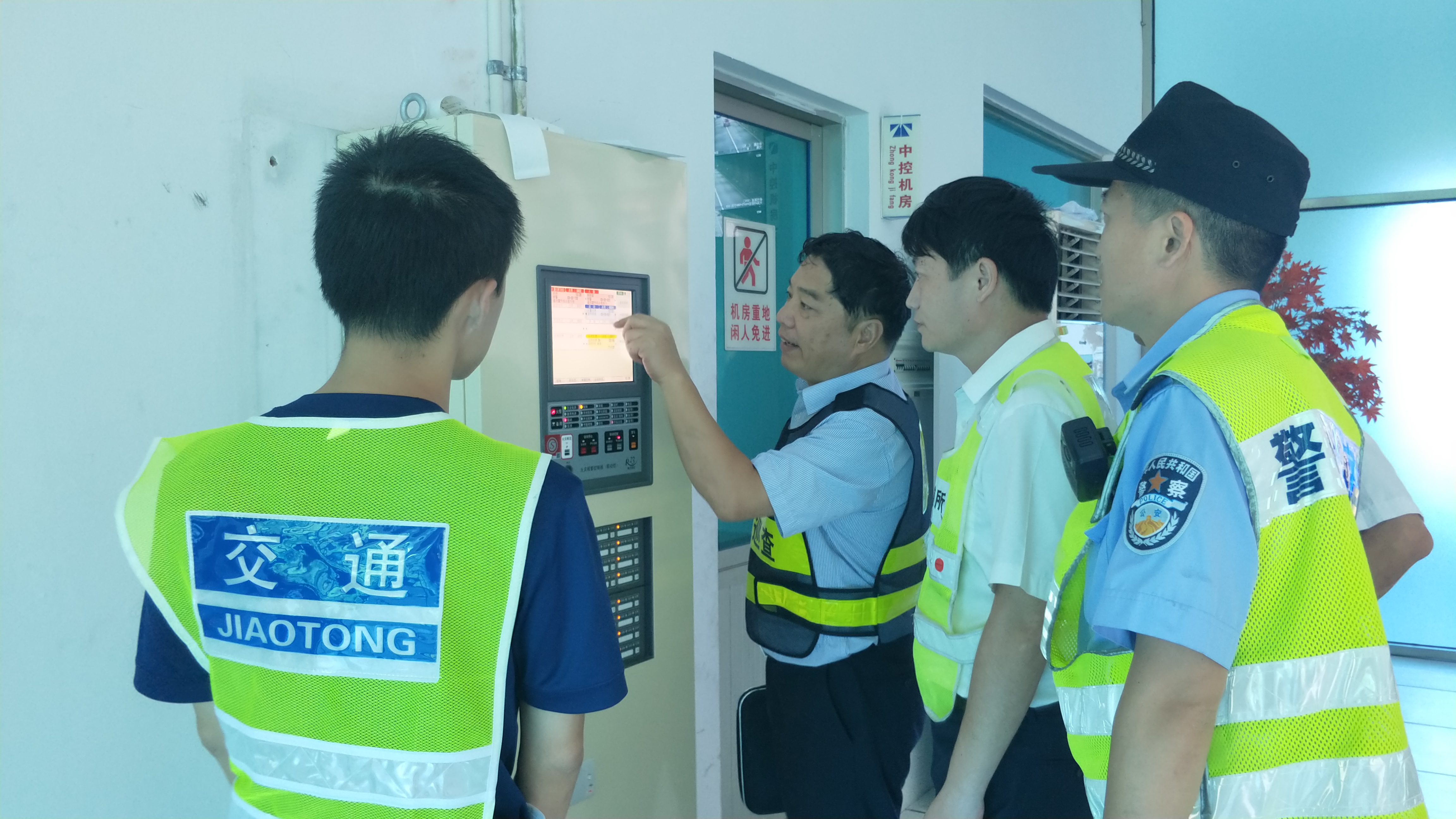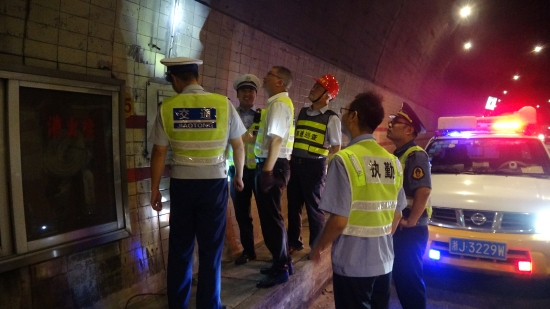 現場,檢查人員分組對隧道內的汽通門遠程控制系統、排煙系統、消防設備火災報警系統、消防報警電話疏散逃生指示標志等設施的位置、數量、配備及現場使用完好率進行了全面細致的檢查并記錄存在的問題,討論改進方法。