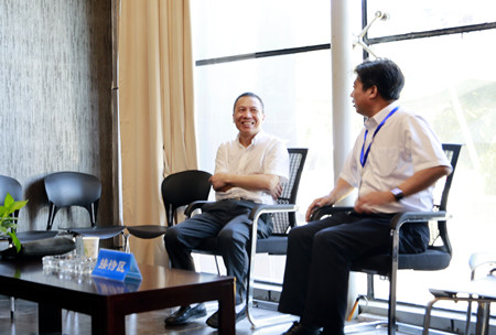 圖為集團副董事長、總經理張建平向股權溫嶺收購點工作人員問候