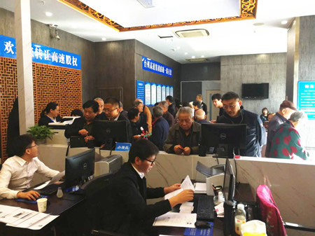10月31日當天,全市各收購點股東絡繹不絕,股東轉讓熱情高漲,場面尤其火爆。當天下午,收購時間點過后,還有股東在收購點辦理轉讓手續。