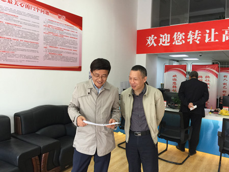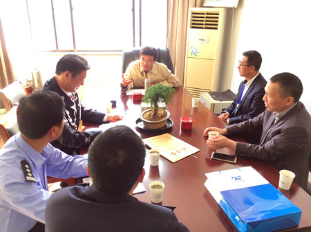 圖為市國資委主任徐豪和集團總經理張建平一起走訪市國稅局股東單位