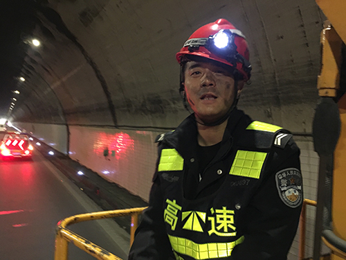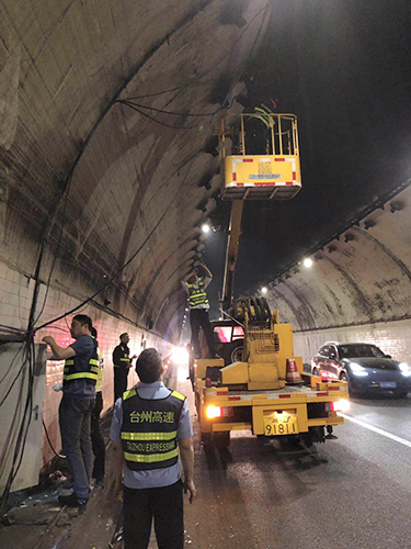 爭(zhēng)分奪秒修電纜 全力以赴保暢通 “大家加把勁兒,先把這根電纜固定好,絕不能影響隧道安全通行!”5月9日早上,黃土嶺隧道所所長(zhǎng)李海福在溫向隧道,指揮執(zhí)勤隊(duì)員電纜搶修。