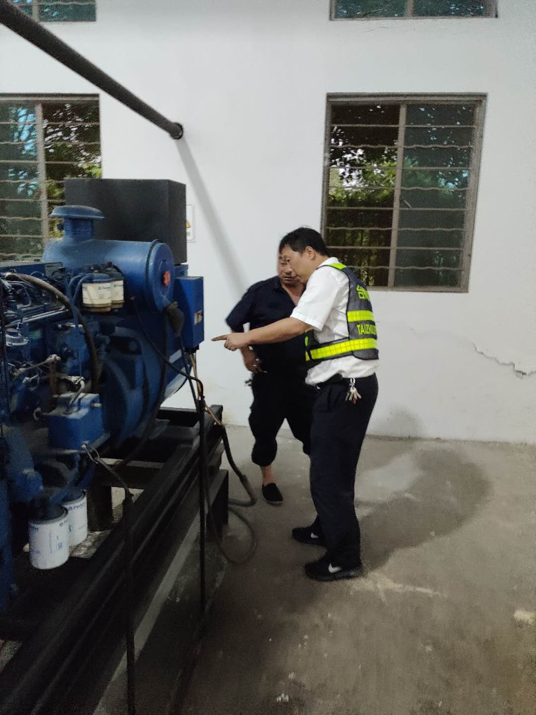 圖為搶修人員檢查發(fā)電機運行狀況