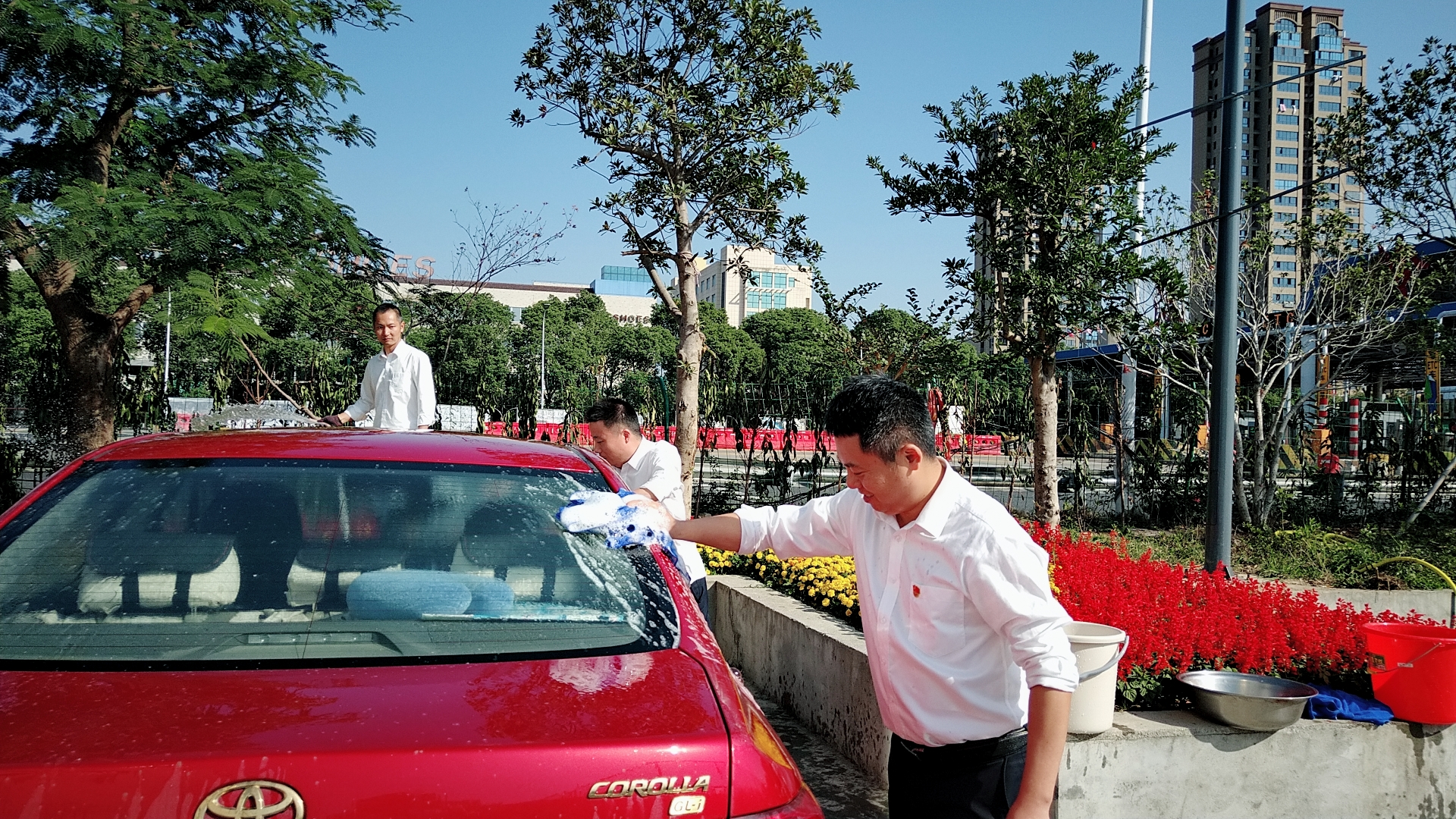 黨員服務群眾免費洗車 |