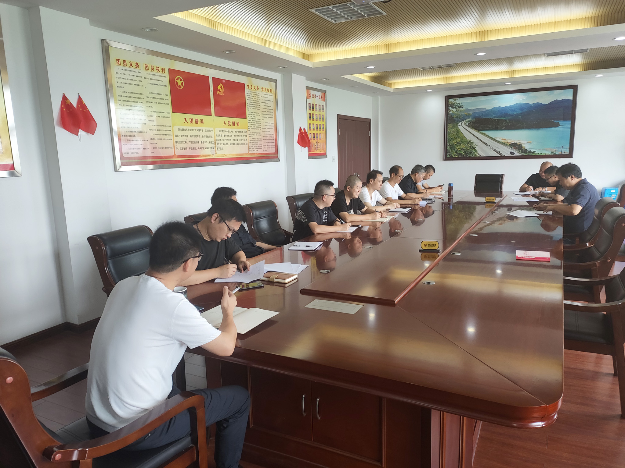 圖為學習現場 中心負責人逐章逐條導讀了集團下發的《規定》,讓每個與會人員對其內容有了初步的認識和了解。他要求中心每位人員從思想上重視《規定》的學習,盡快熟悉里面的每條內容,做到知規、懂規;嚴格按《規定》約束自己的日常工作,除了自身牢固樹立法律、紀律意識外,還要提醒和教育身邊的同事、親屬遵紀守法,要有敬畏之心,千萬不要觸碰紅線,勿以惡小而為之;全面加強廉政建設,強化勞動紀律和安全意識,做到有法必守,有規必遵。 在此之前,該部門員工總覺得平時搞維養工作,違規違紀處分,特別是貪腐離得很遠,腦子里沒有繃緊這根弦,學習完《規定》后才知道工作生活中稍不注意,就可能跨過“紅線”,紛紛表示今后一定要加強這方面的學習和自律,對機電設備安全負責的同時,也要對自已的安全負責。 項寅曉