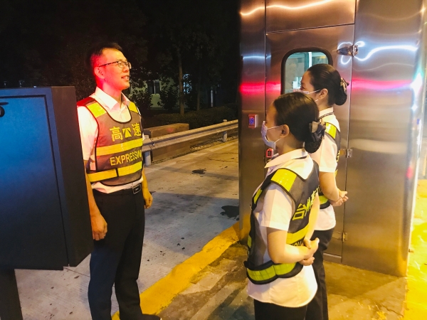 “鈴鈴鈴……”7月20日凌晨2點40分,臨海南收費所傳來急促刺耳的電話鈴聲。 “主線有事故,出口分流,ETC72車道改人工。” 近階段,臨海南收費所在事先沒有通知和任何準備的情況下,分批次對四個征費班組開展夜間突擊緊急集合演練,考察保暢隊伍在遇緊急事件時到達崗?fù)さ乃俣龋约?/span>應(yīng)急處置能力。 一聽到緊急通知,所有在崗人員像對待真事故一樣,第一時間到達崗?fù)ご?/span>