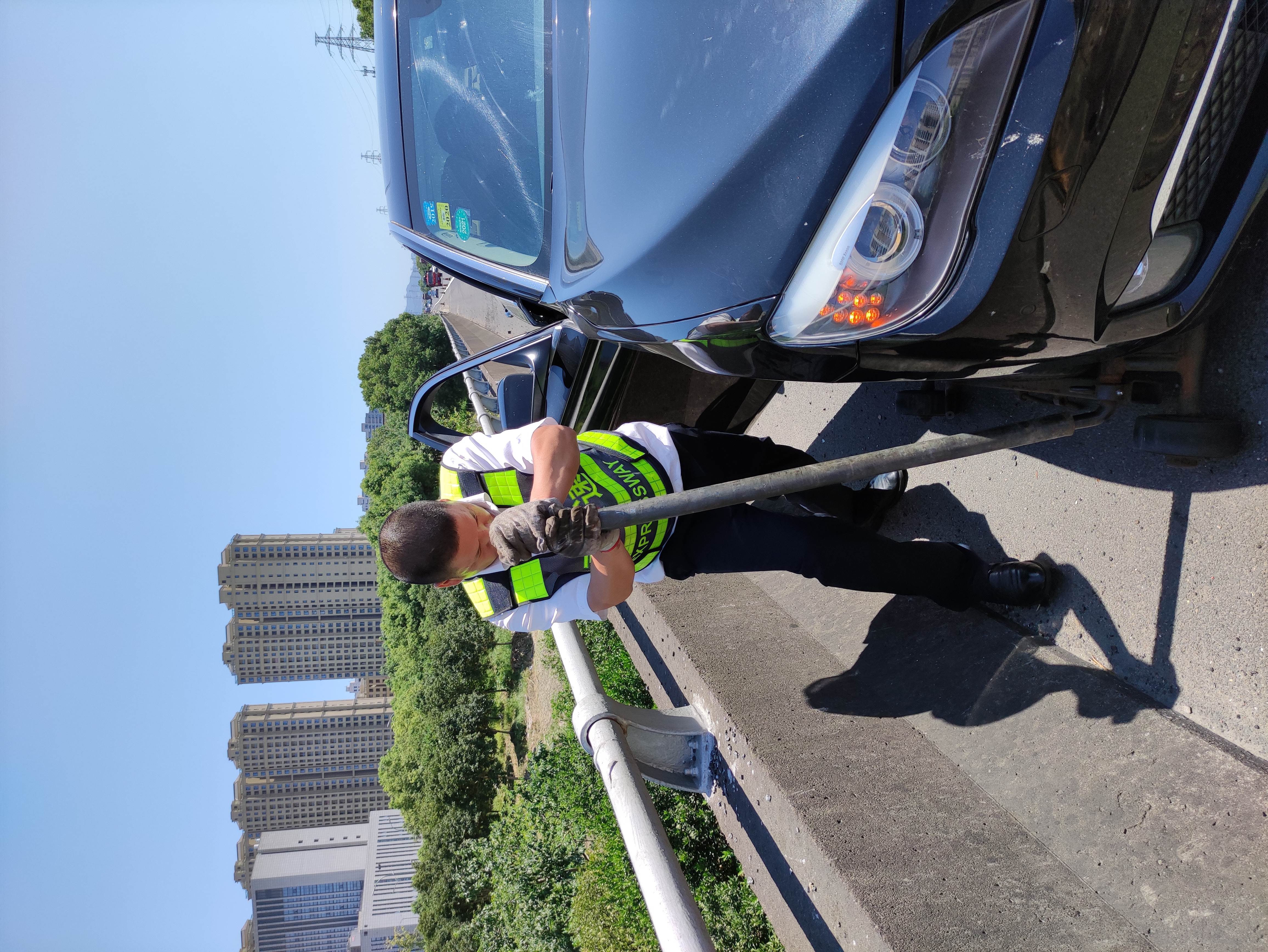 險(xiǎn)情就是命令,兩人拼著命咬著牙堅(jiān)持著,用撬棍把四個(gè)輔助輪都安裝好,把車輛安全帶離高速。