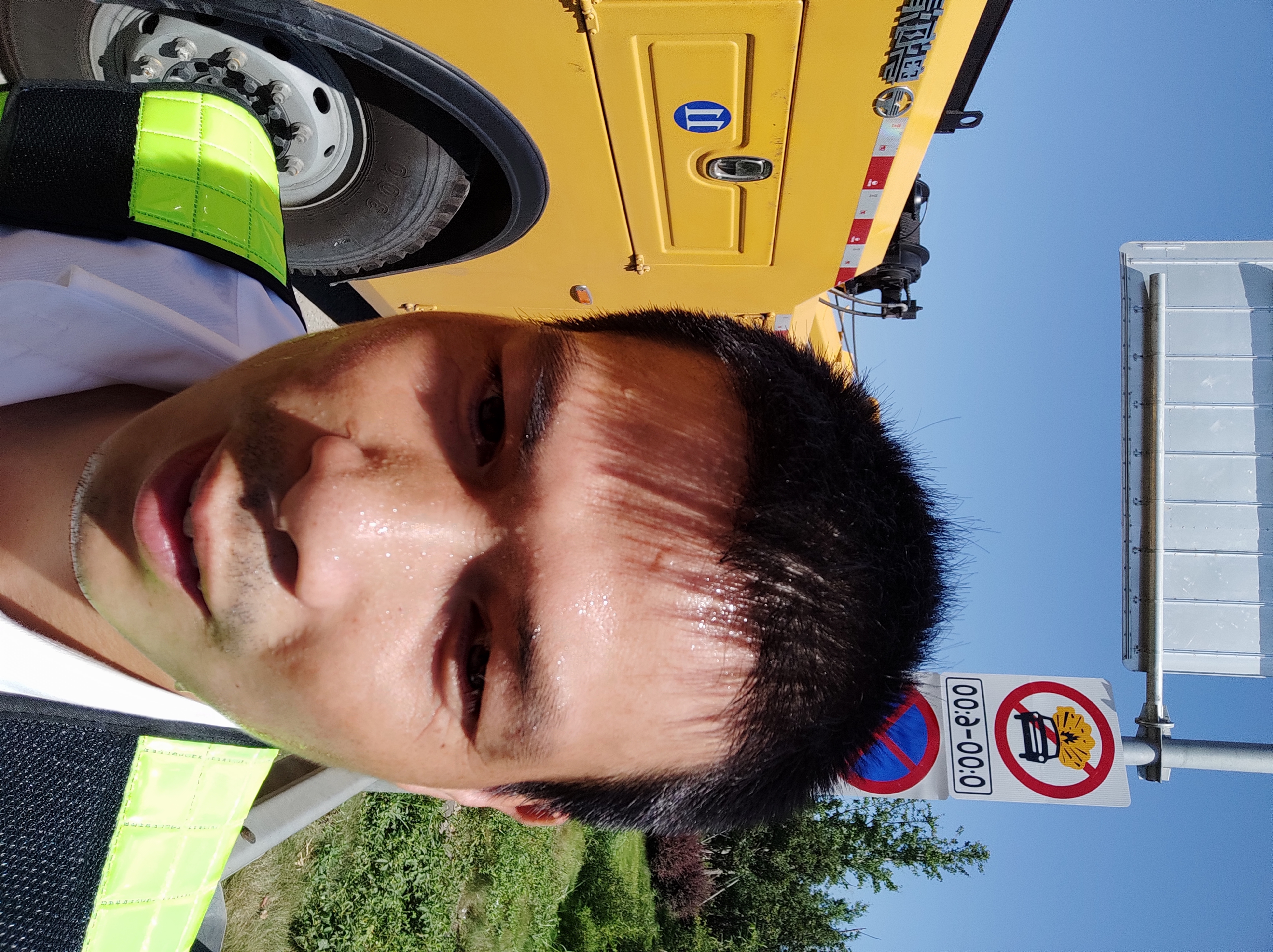 “這地面溫度已經(jīng)超過70℃了吧,滾釘燙!”為了擺正車叉位置,阮文標(biāo)頂著酷暑爬到車底調(diào)整位置,爬出來(lái)的時(shí)候,手隔著手套都被燙紅了。