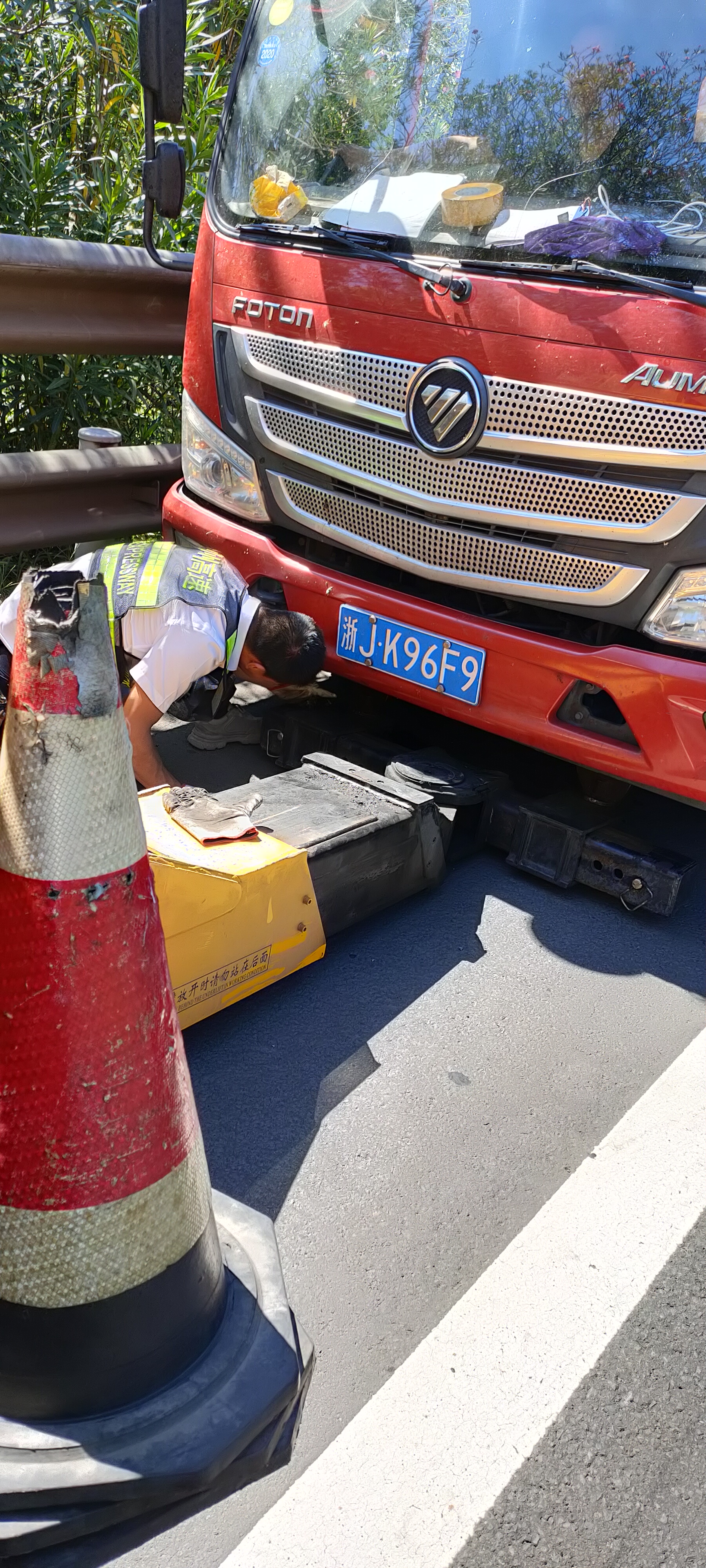 8月14日中午12點(diǎn)50分,施救中心接到報(bào)警,甬臺(tái)溫高速寧向距離臺(tái)州收費(fèi)所大概5公里的地方有小車拋錨,需要救援。
