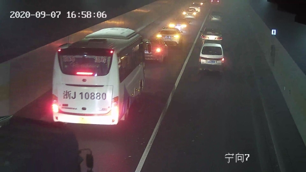 9月7日下午16點53分,一輛大貨車駛入寧向黃土嶺隧道,打著雙閃燈,整車發散出濃濃的煙霧,造成隧道內能見度極低。