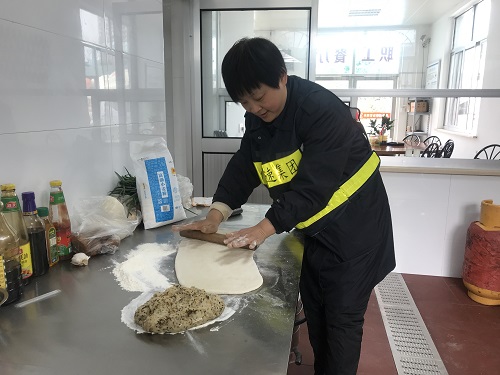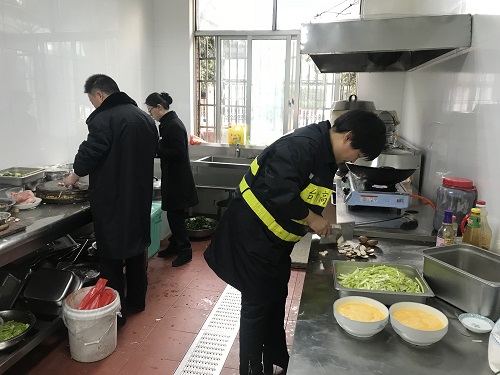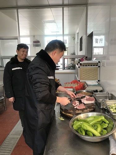 臨近春節又正值春運期間,一時也找不到人員替代。為了保證員工正常用餐,中午,楊瑩瑩決定親自下廚為員工做飯,冰冷的水里直接洗菜,掄起廚刀剁肉切菜,卷起袖子熱鍋炒菜,儼然成為合格的大廚。副所長周超、杜佳自動加入司廚行列,其他行政人員在一旁配合摘菜、剝蒜等等,正在休息的班組其他人員見狀也紛紛前來幫忙。這一刻,小小廚房其樂融融,那是家的味道。午餐過后,楊瑩瑩又開始考慮晚餐和明天的早餐,但是她不再發愁,因為身后還有無數個他們。