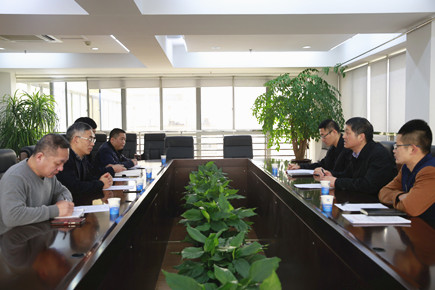 圖為市國(guó)資委副主任金偉一行在聽(tīng)取匯報(bào)