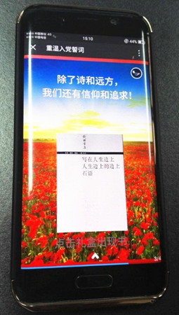 “凝視黨旗,我把奉獻刻心里;舉起右拳,我把責任刻心里;宣讀誓言見證我對黨的忠誠;這崇高的選擇是我終身的信仰----”點開微信圖文信息,伴隨著低沉渾厚的男聲詩朗誦,接收到信息的黨員們不由肅然起敬,仿佛置身當年黨旗下宣誓的莊嚴時刻。