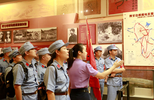 圖為黨員參觀延安革命紀念館 接下來的學習參觀行程安排得非常緊湊,大家冒酷暑頂烈日,一路顛簸,從楊家嶺到梁家河再到南泥灣,低矮簡陋的窖洞里,一代偉人的足跡就在眼前,歷史的回音縈繞耳邊,蕩氣回腸的故事撼人心魄;革命紀念館里,面對一張張圖片和一件件歷史文物,大家駐足觀看,思緒不由自主地回到那戰火紛飛的抗日戰爭和解放戰爭,回到艱苦樸素和激情燃燒的延安時代。在解說員的帶領下,所到之處,大家認真聽講解,看到振奮人心的畫面時,大家紛紛拿出手機拍下來留作紀念。 此次延安之行,是一次生動而深入的紅色尋根之旅,更是一次堅定理想信念的精神之旅。收獲滿滿的黨員們掩不住內心的喜悅,一路上交流學習體會、分享學習心得。大家紛紛表示,一定要把延安精神貫穿到日常工作中去。此次的延安之行,也將注定成為這29位黨員們一生最難忘的記憶。 鄭瑛芝