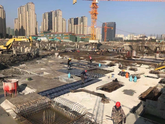 目前,施工正在全班上馬,早晚搶工,全速推進,工程管理人員隨時在場監管質量與安全,項目建設節節攀升。1號、5號、9號、12號樓正在綁扎鋼筋,2號、6號和10號樓已進入底板墊層施工,計劃15日前完成中央庭院以東樓幢土方開挖,力爭春節前完成B區商品房地塊全部土方工程和基礎墊層,局部樓棟達到二層面。