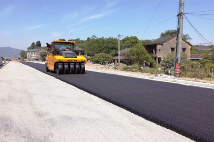 圖為黃長發(fā)射線接線段地面道路瀝青鋪設(shè)場景